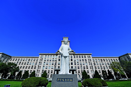 在南開(kāi)大學(xué)八里臺(tái)校區(qū)主教學(xué)樓前,周恩來(lái)總理的塑像靜靜佇立(10月14日攝)。