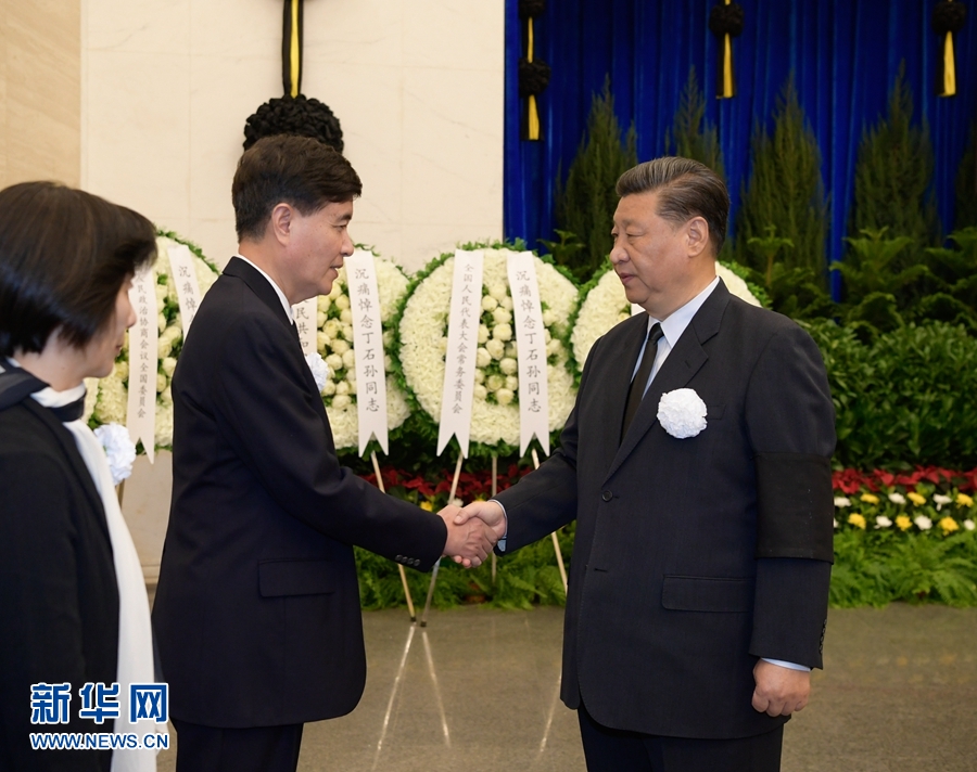 上午9時45分許,習(xí)近平、李克強、栗戰(zhàn)書、汪洋、王滬寧、趙樂際、韓正、王岐山等,在哀樂聲中緩步來到丁石孫同志的遺體前肅立默哀,向丁石孫同志的遺體三鞠躬,并與丁石孫同志親屬一一握手,表示慰問。