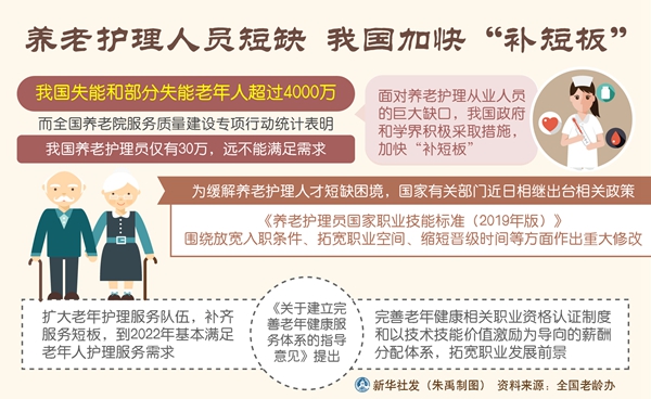 新華社北京11月5日電(記者田曉航)來自全國(guó)老齡辦的數(shù)據(jù)顯示,我國(guó)失能和部分失能老年人超過4000萬,而全國(guó)養(yǎng)老院服務(wù)質(zhì)量建設(shè)專項(xiàng)行動(dòng)統(tǒng)計(jì)表明,我國(guó)養(yǎng)老護(hù)理員僅有30萬,遠(yuǎn)不能滿足需求。面對(duì)養(yǎng)老護(hù)理從業(yè)人員的巨大缺口,我國(guó)政府和學(xué)界積極采取措施,加快“補(bǔ)短板”。