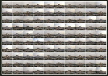 拍攝進(jìn)行到3個月多后,周健仕把照片整理成專題,命名為《杭州空氣百日祭》。在那幅作品當(dāng)中,參照物和背景基本相同,唯一變化的是清晰度:除了少數(shù)幾張有藍(lán)天白云,幾乎所有的照片都是灰色的。