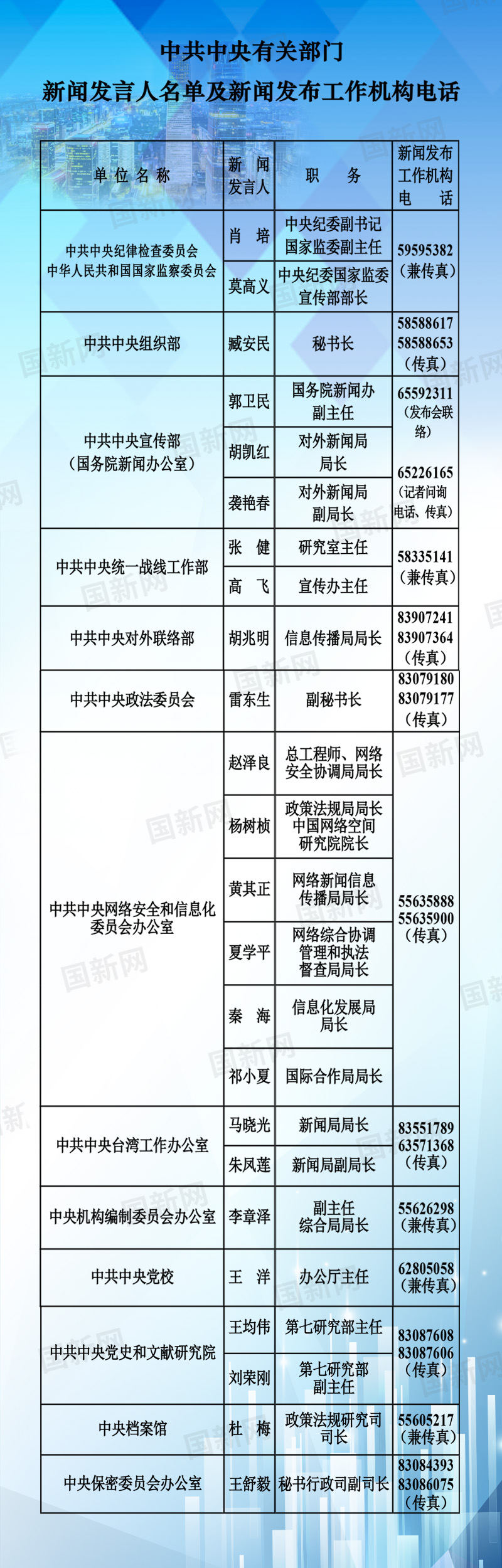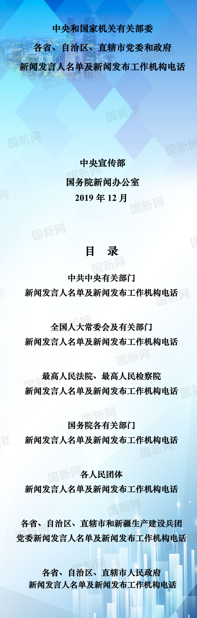 中央國(guó)家機(jī)關(guān)和地方2020年新聞發(fā)言人名錄發(fā)布