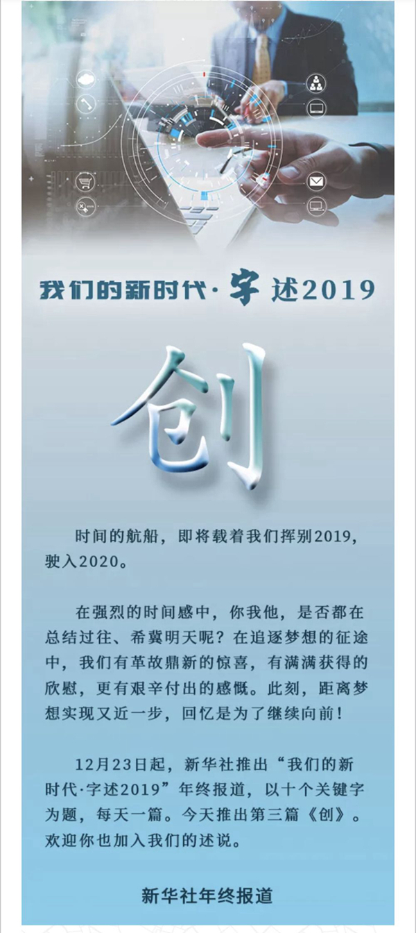 鴻蒙初辟,天地始開。不經(jīng)一番篳路藍(lán)縷,哪來春華秋實?不信你看,創(chuàng)新路上,載人航天再飛天,大興機(jī)場始展翅,國產(chǎn)航母初入列……2019一個個“中國創(chuàng)造”,向世人展示大國創(chuàng)新的萬千氣象!