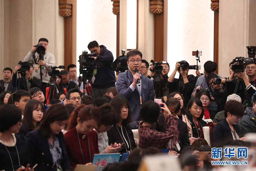 全國政協(xié)十三屆二次會議新聞發(fā)布會于3月2日15:00在人民大會堂一層新聞發(fā)布廳召開,大會新聞發(fā)言人郭衛(wèi)民向中外媒體介紹本次大會有關情況并回答記者提問。圖為中國新聞社記者。新華網(wǎng)/中國政府網(wǎng) 馬娟 攝
