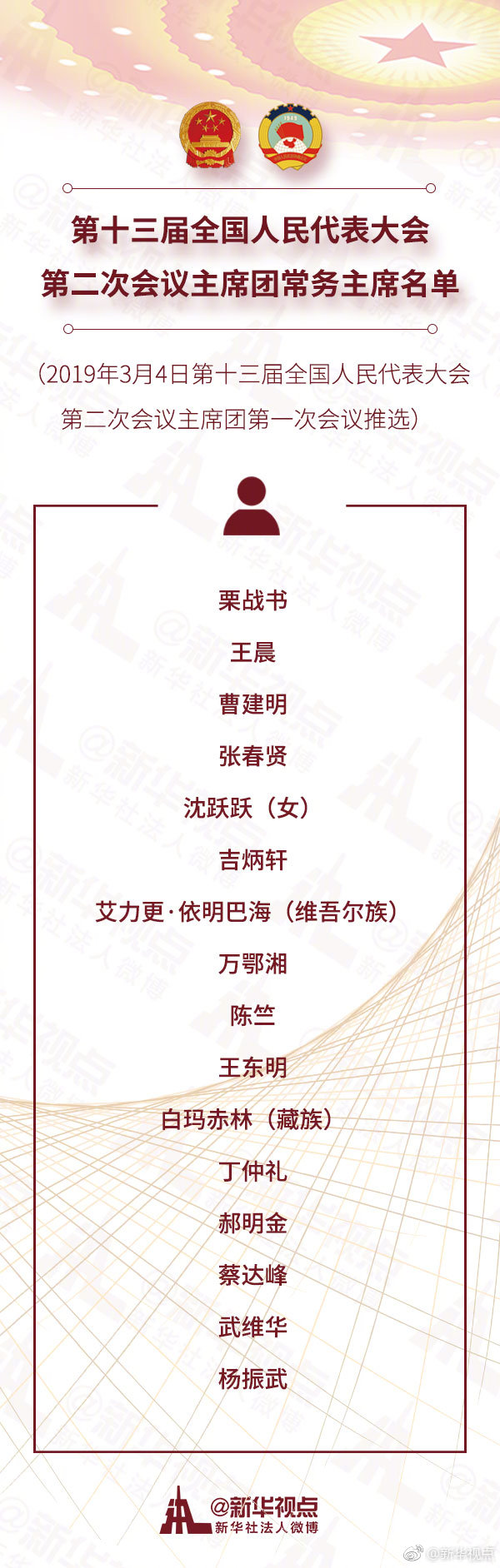 第十三屆全國人民代表大會第二次會議主席團(tuán)常務(wù)主席名單