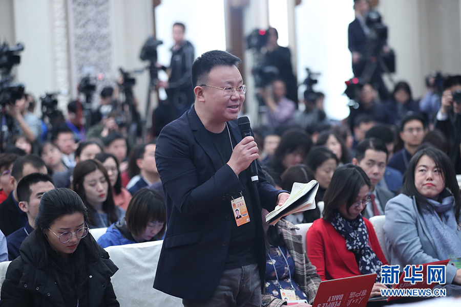 十三屆全國人大二次會議3月4日上午11時15分在人民大會堂新聞發(fā)布廳舉行新聞發(fā)布會,由大會發(fā)言人就大會議程和人大工作相關(guān)的問題回答中外記者提問。圖為封面新聞記者提問。新華網(wǎng)/中國政府網(wǎng) 陳杰 攝