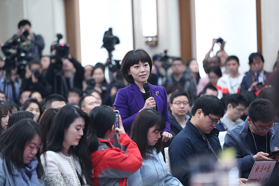十三屆全國人大二次會議3月4日上午11時15分在人民大會堂新聞發(fā)布廳舉行新聞發(fā)布會,由大會發(fā)言人就大會議程和人大工作相關(guān)的問題回答中外記者提問。圖為中央廣播電視總臺央視記者提問。新華網(wǎng)/中國政府網(wǎng) 陳杰 攝
