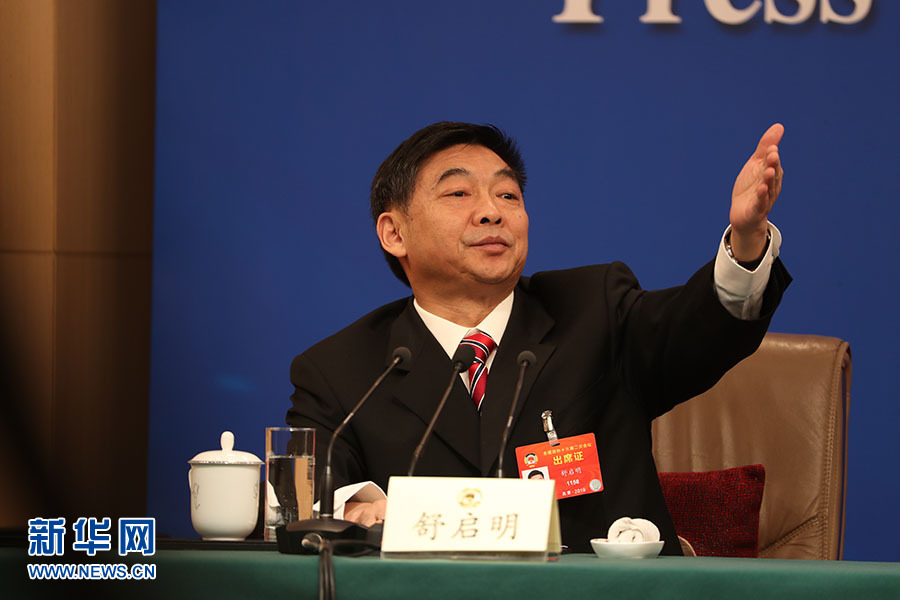 全國(guó)政協(xié)十三屆二次會(huì)議3月5日15:00在梅地亞中心多功能廳舉行記者會(huì),邀請(qǐng)5位全國(guó)政協(xié)委員就“打贏防范化解重大風(fēng)險(xiǎn)、精準(zhǔn)脫貧、污染防治三大攻堅(jiān)戰(zhàn)”回答記者提問(wèn)。圖為主持人舒啟明。新華網(wǎng)/中國(guó)政府網(wǎng) 陳杰 攝