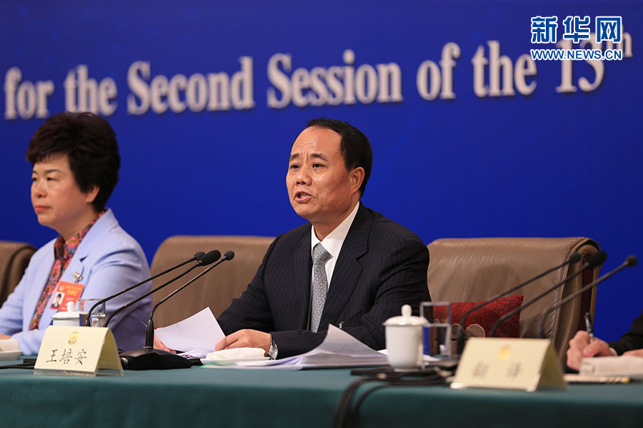 全國政協(xié)十三屆二次會議3月5日15:00在梅地亞中心多功能廳舉行記者會,邀請5位全國政協(xié)委員就“打贏防范化解重大風(fēng)險、精準脫貧、污染防治三大攻堅戰(zhàn)”回答記者提問。圖為全國政協(xié)人口資源環(huán)境委員會副主任(福利保障界),中國計劃生育協(xié)會黨組書記、常務(wù)副會長,原國家衛(wèi)生計生委副主任王培安回答記者提問。新華網(wǎng)/中國政府網(wǎng) 劉廈 攝