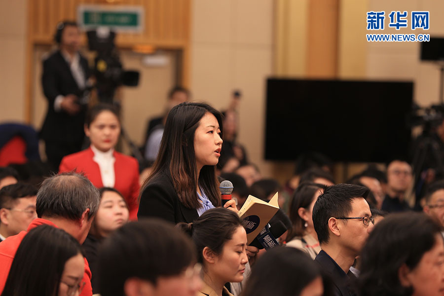 全國(guó)政協(xié)十三屆二次會(huì)議3月5日15:00在梅地亞中心多功能廳舉行記者會(huì),邀請(qǐng)5位全國(guó)政協(xié)委員就“打贏防范化解重大風(fēng)險(xiǎn)、精準(zhǔn)脫貧、污染防治三大攻堅(jiān)戰(zhàn)”回答記者提問(wèn)。圖為財(cái)新周刊記者提問(wèn)。新華網(wǎng)/中國(guó)政府網(wǎng) 劉廈 攝