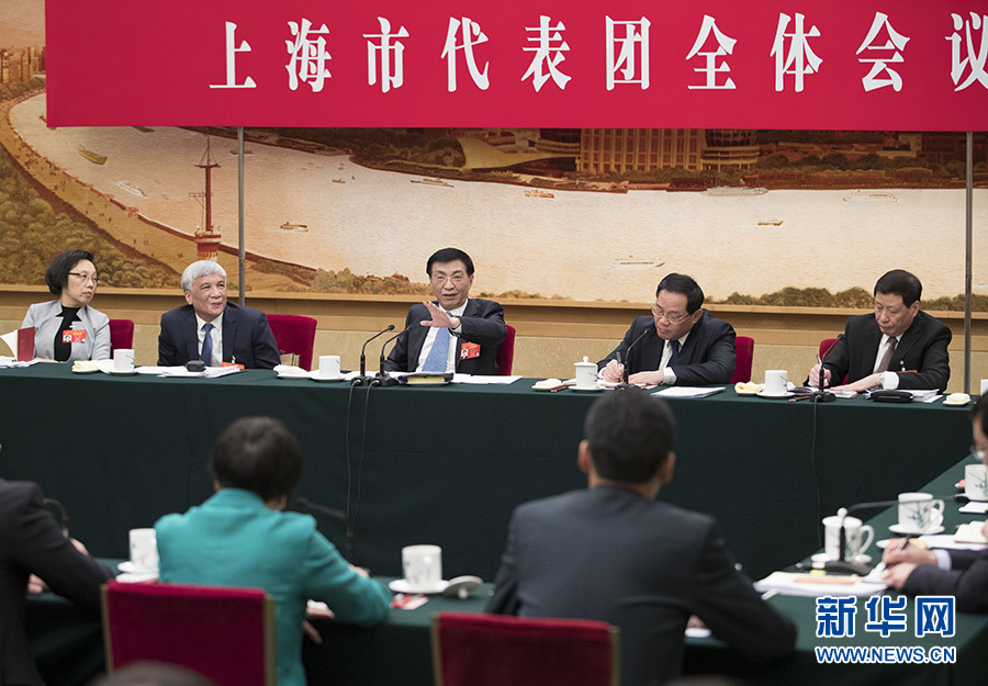 3月7日,中共中央政治局常委、中央書記處書記王滬寧參加十三屆全國人大二次會(huì)議上海代表團(tuán)的審議。 新華社記者 王曄 攝