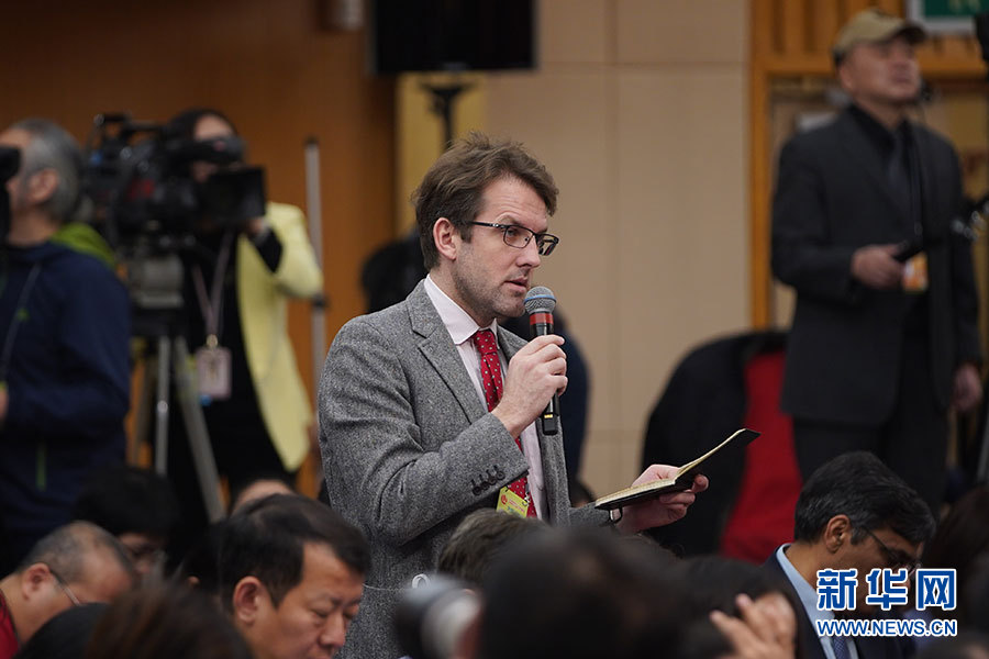 ????十三屆全國人大二次會議新聞中心3月7日9時在梅地亞中心新聞發(fā)布廳舉行記者會,邀請財政部部長劉昆,副部長程麗華、劉偉就“財稅改革和財政工作”相關(guān)問題回答中外記者提問。圖為彭博新聞社記者提問。新華網(wǎng)/中國政府網(wǎng) 劉廈 攝
