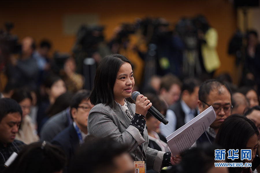 ????十三屆全國人大二次會議新聞中心3月7日9時(shí)在梅地亞中心新聞發(fā)布廳舉行記者會,邀請財(cái)政部部長劉昆,副部長程麗華、劉偉就“財(cái)稅改革和財(cái)政工作”相關(guān)問題回答中外記者提問。圖為成都商報(bào)紅星新聞記者提問。新華網(wǎng)/中國政府網(wǎng) 劉廈 攝
