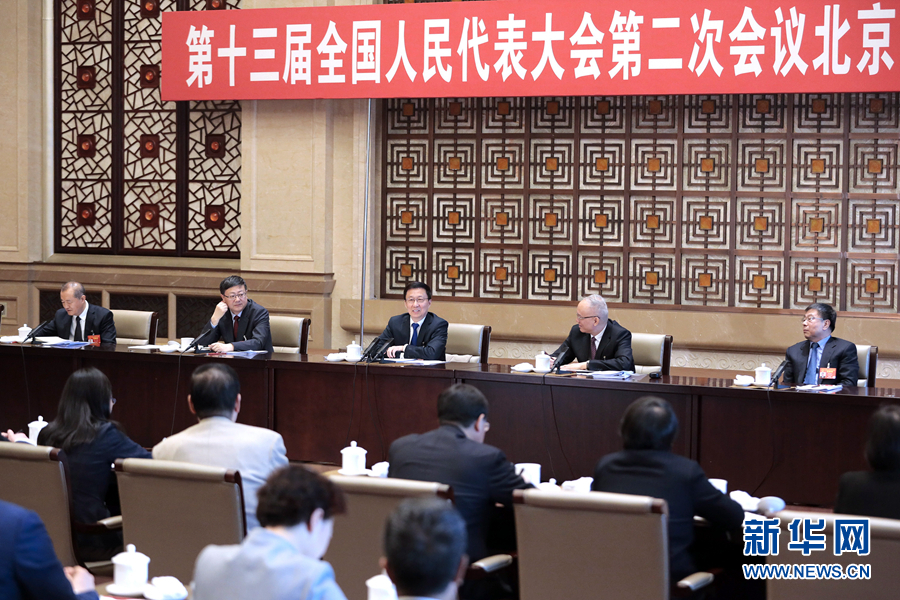 3月8日,中共中央政治局常委、國務(wù)院副總理韓正參加十三屆全國人大二次會議北京代表團的審議。新華社記者 劉彬 攝