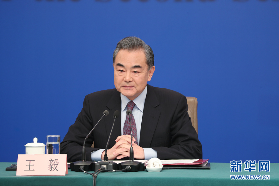 十三屆全國人大二次會議新聞中心3月8日10時在梅地亞中心新聞發(fā)布廳舉行記者會,邀請國務(wù)委員兼外交部長王毅就“中國外交政策和對外關(guān)系”相關(guān)問題回答中外記者提問。圖為王毅回答記者提問。新華網(wǎng)/中國政府網(wǎng) 陳杰 攝
