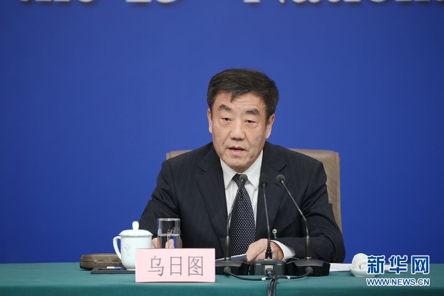 十三屆全國(guó)人大二次會(huì)議新聞中心3月9日在梅地亞中心新聞發(fā)布廳舉行記者會(huì),邀請(qǐng)全國(guó)人大農(nóng)業(yè)與農(nóng)村委員會(huì)主任委員陳錫文、全國(guó)人大財(cái)政經(jīng)濟(jì)委員會(huì)副主任委員烏日?qǐng)D、全國(guó)人大常委會(huì)法制工作委員會(huì)副主任劉俊臣、全國(guó)人大常委會(huì)法制工作委員會(huì)副主任許安標(biāo)、全國(guó)人大環(huán)境與資源保護(hù)委員會(huì)委員程立峰就“人大立法工作”相關(guān)問(wèn)題回答記者提問(wèn)。圖為全國(guó)人大財(cái)政經(jīng)濟(jì)委員會(huì)副主任委員烏日?qǐng)D。新華網(wǎng)/中國(guó)政府網(wǎng) 劉廈 攝