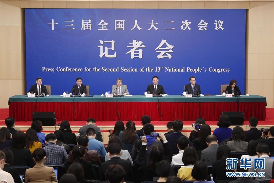 3月10日,十三屆全國人大二次會議新聞中心舉行記者會,邀請中國人民銀行行長易綱,副行長陳雨露,副行長、國家外匯管理局局長潘功勝,副行長范一飛就“金融改革與發(fā)展”相關問題回答中外記者提問。 新華社記者 沈伯韓 攝
