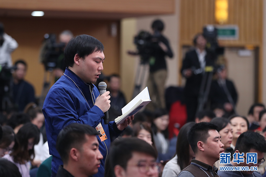 十三屆全國人大二次會議新聞中心3月11日(星期一)10時30分在梅地亞中心新聞發(fā)布廳舉行記者會,邀請國家市場監(jiān)督管理總局局長張茅、國家藥品監(jiān)督管理局局長焦紅、國家知識產(chǎn)權(quán)局局長申長雨就“加強市場監(jiān)管 維護市場秩序”相關(guān)問題回答中外記者提問。圖為經(jīng)濟日報融媒體中國經(jīng)濟網(wǎng)記者提問。新華網(wǎng)/中國政府網(wǎng)?劉廈 攝?