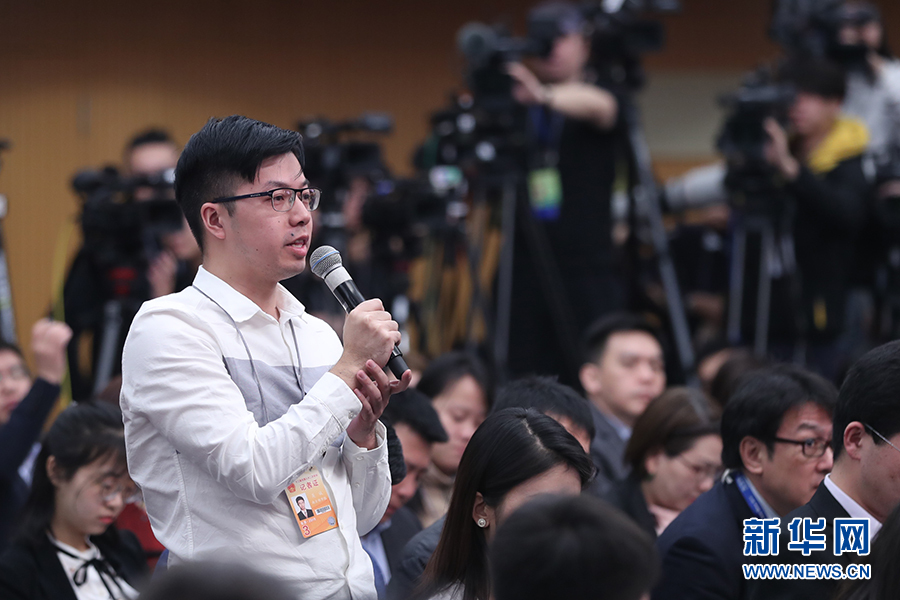 十三屆全國人大二次會議新聞中心3月11日(星期一)10時30分在梅地亞中心新聞發(fā)布廳舉行記者會,邀請國家市場監(jiān)督管理總局局長張茅、國家藥品監(jiān)督管理局局長焦紅、國家知識產(chǎn)權局局長申長雨就“加強市場監(jiān)管 維護市場秩序”相關問題回答中外記者提問。圖為南方都市報南方報業(yè)全媒體記者提問。新華網(wǎng)/中國政府網(wǎng) 劉廈 攝