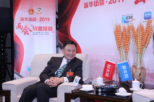3月12日,全國人大代表、中國第一汽車集團有限公司黨委書記、董事長徐留平做客新華網(wǎng)2019全國兩會特別報道。新華網(wǎng) 劉牧平 攝