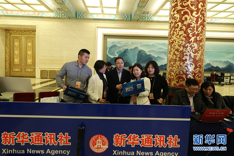 3月15日上午十三屆全國人大二次會(huì)議閉幕后,國務(wù)院總理李克強(qiáng)在人民大會(huì)堂三樓金色大廳會(huì)見采訪十三屆全國人大二次會(huì)議的中外記者并回答記者提出的問題。圖為新華網(wǎng)記者在做直播準(zhǔn)備。新華網(wǎng)/中國政府網(wǎng) 劉廈 攝