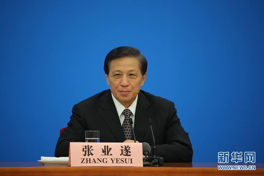 3月15日上午十三屆全國(guó)人大二次會(huì)議閉幕后,國(guó)務(wù)院總理李克強(qiáng)在人民大會(huì)堂三樓金色大廳會(huì)見采訪十三屆全國(guó)人大二次會(huì)議的中外記者并回答記者提出的問(wèn)題。圖為大會(huì)發(fā)言人張業(yè)遂。新華網(wǎng)/中國(guó)政府網(wǎng) 劉廈 攝?
