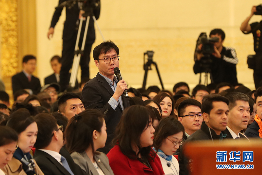 3月15日上午十三屆全國(guó)人大二次會(huì)議閉幕后,國(guó)務(wù)院總理李克強(qiáng)在人民大會(huì)堂三樓金色大廳會(huì)見(jiàn)采訪十三屆全國(guó)人大二次會(huì)議的中外記者并回答記者提出的問(wèn)題。圖為韓國(guó)日?qǐng)?bào)記者提問(wèn)。新華網(wǎng)/中國(guó)政府網(wǎng)?陳杰 攝