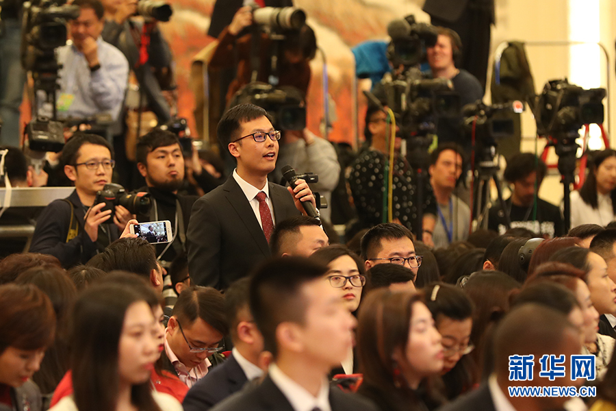 3月15日上午十三屆全國人大二次會議閉幕后,國務院總理李克強在人民大會堂三樓金色大廳會見采訪十三屆全國人大二次會議的中外記者并回答記者提出的問題。圖為新華社記者提問。新華網(wǎng)/中國政府網(wǎng)?陳杰 攝