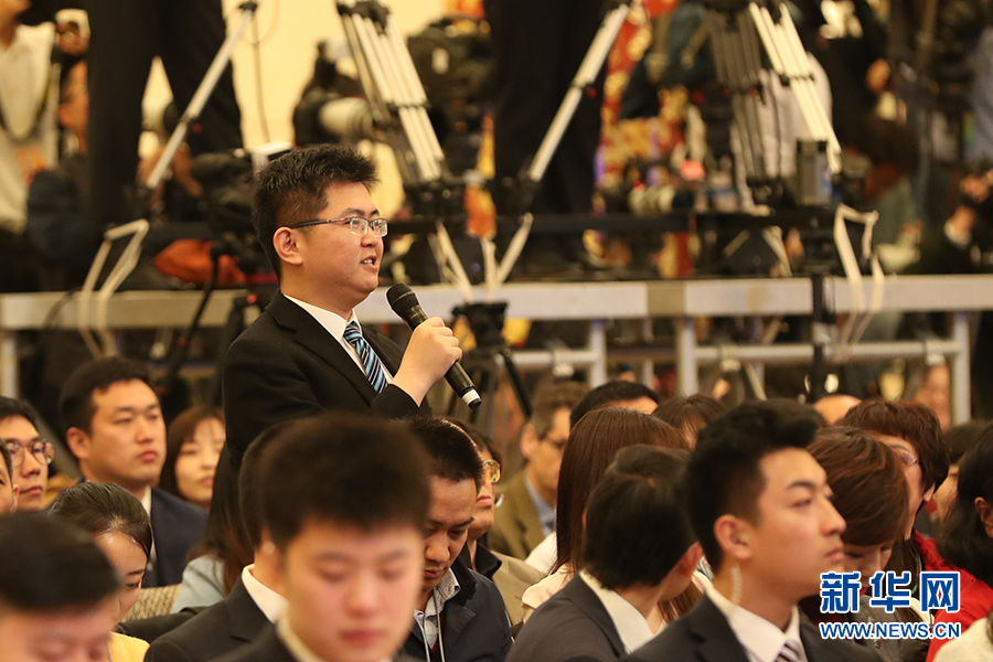 3月15日上午十三屆全國人大二次會議閉幕后,國務(wù)院總理李克強(qiáng)在人民大會堂三樓金色大廳會見采訪十三屆全國人大二次會議的中外記者并回答記者提出的問題。圖為人民日報記者提問。新華網(wǎng)/中國政府網(wǎng)?陳杰 攝