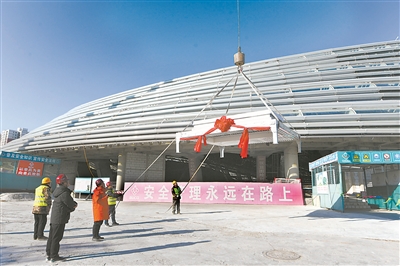 2019年12月31日,施工人員在國家速滑館施工現(xiàn)場(chǎng)起吊最后一塊待安裝的屋面單元板塊。項(xiàng)目建設(shè)方有關(guān)負(fù)責(zé)人表示,國家速滑館“冰絲帶”能如期實(shí)現(xiàn)“絲帶飛舞”,離不開強(qiáng)有力的監(jiān)督。新華社記者 鞠煥宗 攝