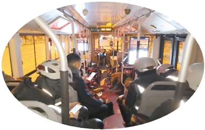 凌晨3時(shí),北京夜路公交車上坐滿代駕司機(jī)。本報(bào)記者 高 喬攝