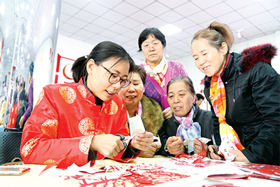 山東淄博市張店區(qū)開展“迎新春·情暖冬日”活動,組織機關(guān)干部教群眾剪窗花。