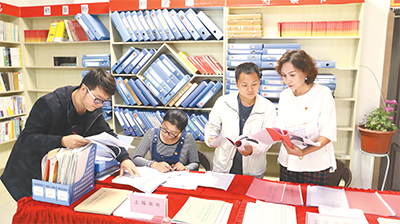 2019年是基層減負年,新疆庫車縣實行“基層一張表”試點改革,圖為干部到健康路社區(qū)匯總檔案報表。