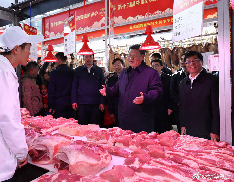 20日下午,習(xí)近平總書記來到昆明國際會(huì)展中心,了解春節(jié)前年貨市場供應(yīng)及國內(nèi)外商品展銷情況,同現(xiàn)場群眾親切交流,并向全國各族人民致以新春祝福。(文字記者:張曉松、朱基釵 攝影記者:鞠鵬、謝環(huán)馳 、燕雁、殷博古) ?????