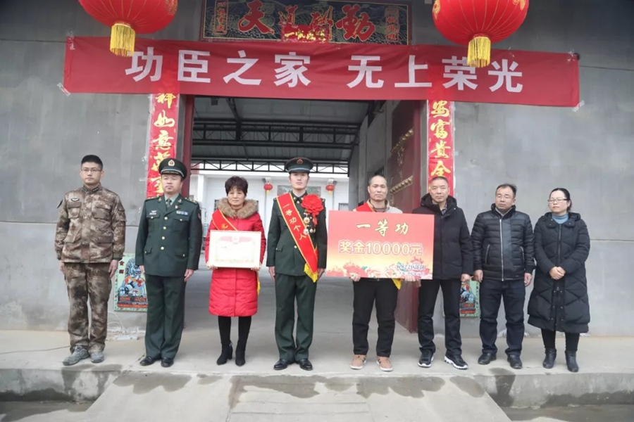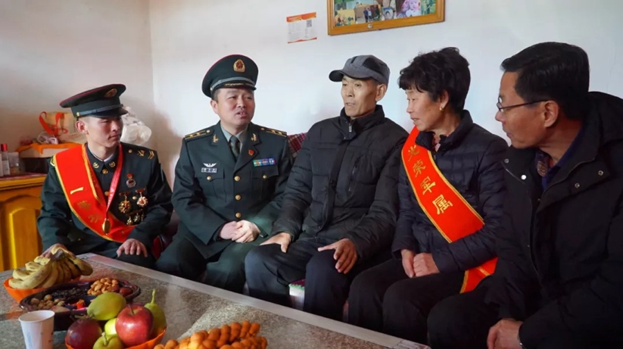 送喜報(bào)干部在一等功臣張德云家進(jìn)行慰問(wèn)