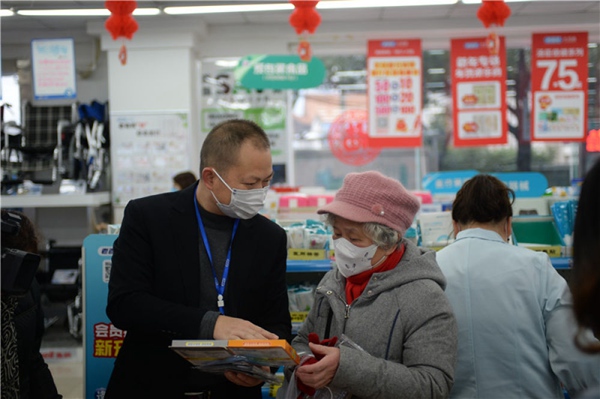 1月23日,在長(zhǎng)沙一家老百姓大藥房?jī)?nèi),店員向市民介紹不同類型的口罩。當(dāng)日,長(zhǎng)沙不少市民來(lái)到藥店購(gòu)買(mǎi)口罩。長(zhǎng)沙連鎖藥企老百姓大藥房質(zhì)量負(fù)責(zé)人表示,為使市民都能買(mǎi)到口罩,防止囤貨,每位進(jìn)店市民限購(gòu)五份口罩;自新型冠狀病毒感染的肺炎疫情發(fā)生以來(lái),店內(nèi)口罩價(jià)格沒(méi)有變化。新華社發(fā)(陳振海 攝)