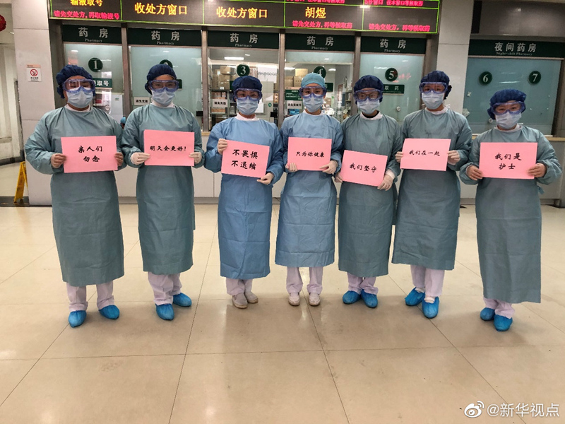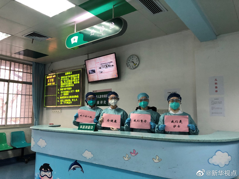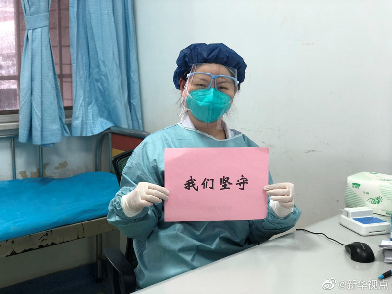 “不畏懼、不退縮”“我們堅(jiān)守” “親人們,勿念?!背Γ錆h同濟(jì)醫(yī)院兒科醫(yī)護(hù)人員在交班間隙拍了幾張?zhí)貏e的拜年照片發(fā)給家人和同事,為武漢市的醫(yī)務(wù)人員加油,也讓家人放心。除夕,本應(yīng)是闔家團(tuán)圓的時刻,但因?yàn)橥蝗缙鋪淼囊咔?,許多醫(yī)務(wù)人員必須堅(jiān)守在臨床第一線。為了讓父母放心,讓丈夫安心,也為了給全市堅(jiān)守在最前線的醫(yī)護(hù)同行加油鼓勁,今天交班時,她們拍下了這樣一組照片。(記者李勁峰、胡喆)