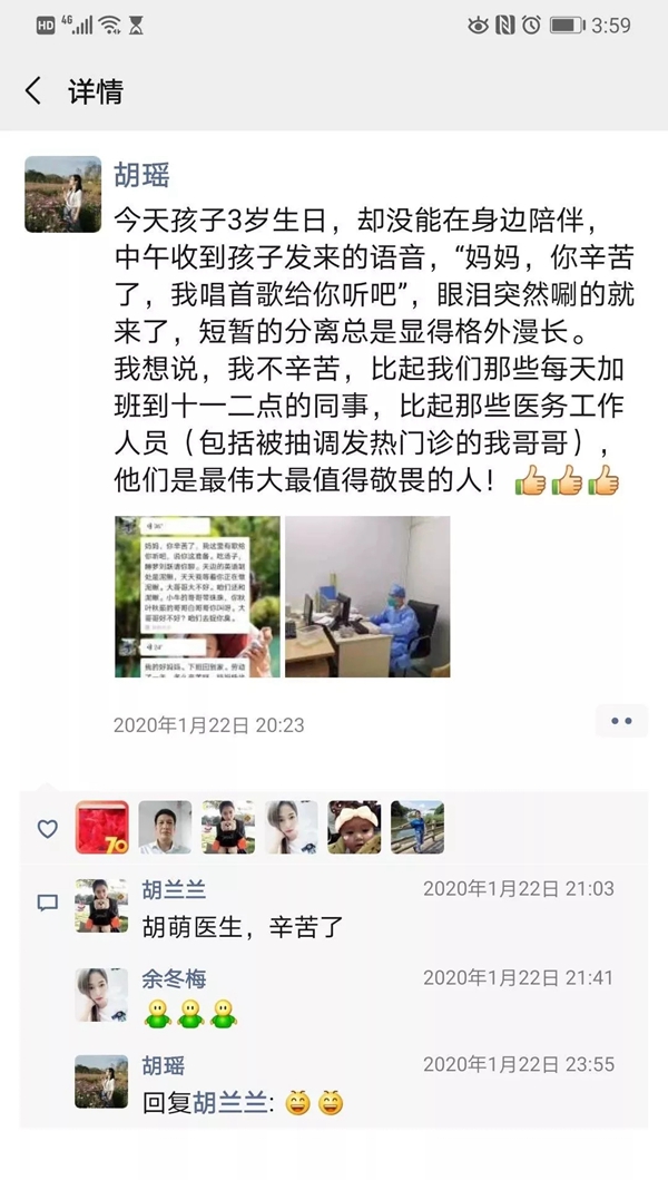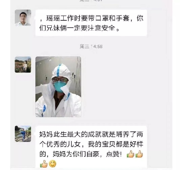 “我爸媽其實(shí)是挺擔(dān)心我們的,他們每天在家也都在關(guān)注肺炎的相關(guān)新聞,知道危險(xiǎn)性,但從來(lái)沒(méi)有一句阻攔的話。我爸是一名老黨員了,他經(jīng)常對(duì)我和妹妹說(shuō),能用所學(xué)幫到社會(huì)是一件光榮的事情?!焙日f(shuō)。