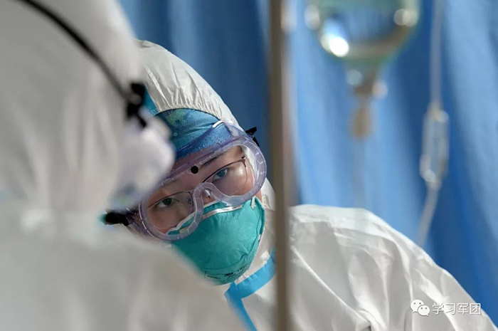 1月27日上午,海軍軍醫(yī)大學(xué)醫(yī)療隊(duì)醫(yī)護(hù)人員在漢口醫(yī)院重癥監(jiān)護(hù)室對(duì)新型冠狀病毒感染的肺炎患者進(jìn)行救治。醫(yī)護(hù)人員加強(qiáng)巡視,觀察輸液滴數(shù)。解放軍報(bào)記者范顯海攝