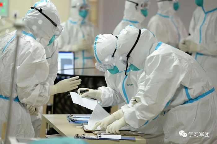 1月27日上午,海軍軍醫(yī)大學(xué)醫(yī)療隊(duì)醫(yī)護(hù)人員在漢口醫(yī)院重癥監(jiān)護(hù)室對(duì)新型冠狀病毒感染的肺炎患者進(jìn)行救治。醫(yī)護(hù)人員認(rèn)真記錄醫(yī)療文書(shū),執(zhí)行醫(yī)囑。解放軍報(bào)記者范顯海攝