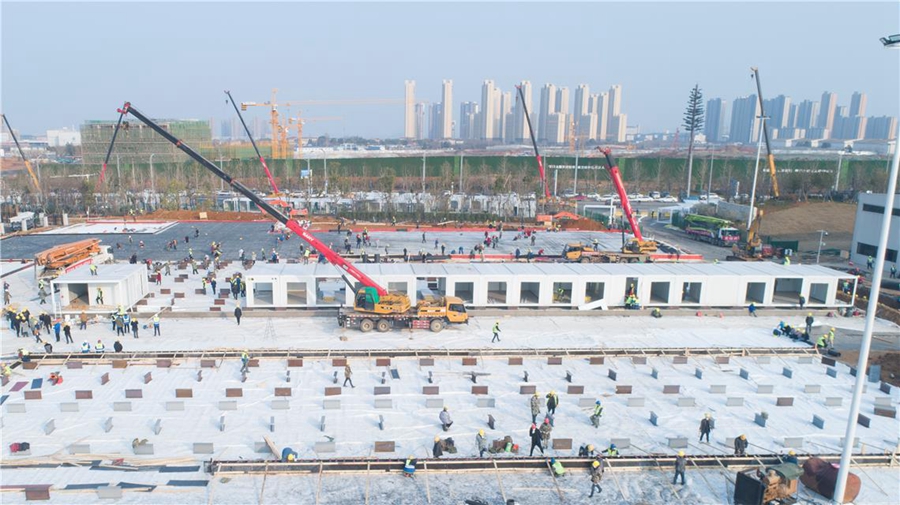 1月25日,由中國建筑中建三局牽頭建設的武漢火神山醫(yī)院正式開工,醫(yī)院總建筑面積3.39萬平方米。截至1月29日下午16時,火神山醫(yī)院項目現(xiàn)場場地平整和回填全部完成,板房基礎混凝土澆筑完成約90%,已經完成300多個箱式板房骨架安裝,同時場外正在抓緊板房拼裝,完成約400個,吊至現(xiàn)場可直接安裝。水電暖通、機電設備等材料全面到位,且同步開始作業(yè)。