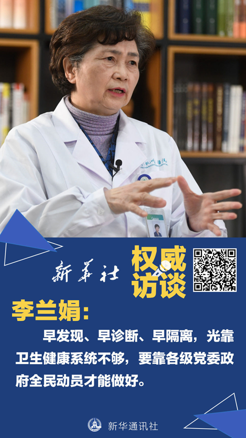 新型冠狀病毒感染的肺炎疫情每一天、每一點(diǎn)變化都牽動(dòng)人心。1月29日,“新華視點(diǎn)”記者專訪了中國(guó)工程院院士、國(guó)家衛(wèi)生健康委高級(jí)別專家組成員李蘭娟。她說(shuō),對(duì)傳染病思想上永遠(yuǎn)不能松懈。依靠各級(jí)黨委政府全民總動(dòng)員,依靠廣大專業(yè)的醫(yī)務(wù)人員,我們一定能勝利。