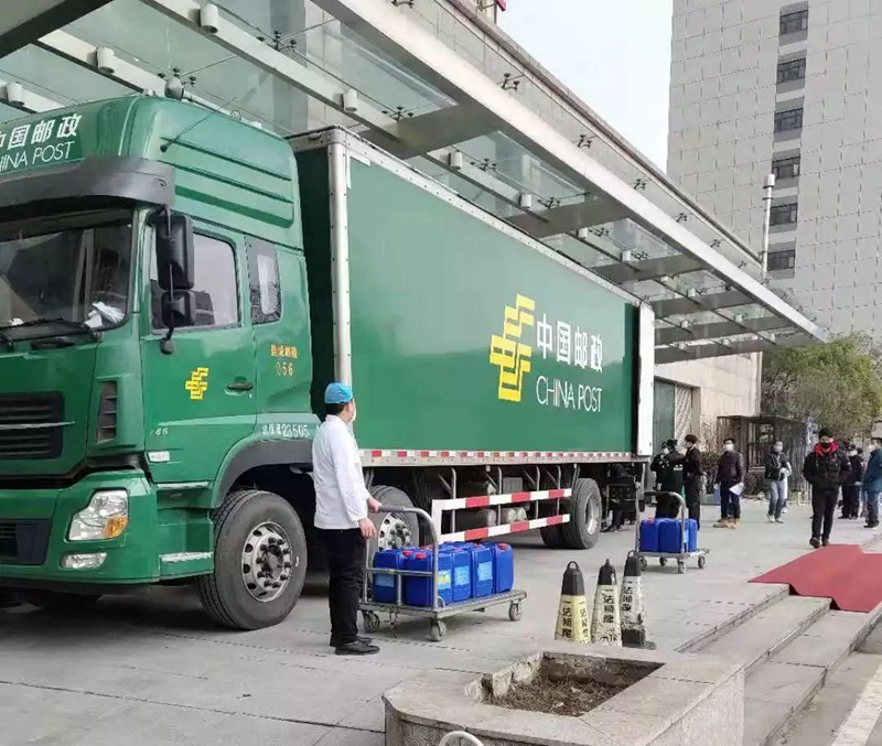 下了機(jī)場(chǎng)高速公路20多公里后順利抵達(dá)武漢郵區(qū)中心局,電話聯(lián)系了調(diào)度人員,直到這時(shí)我倆才知道,此行的目的地是武漢市疫情高危區(qū)——武漢大學(xué)中南醫(yī)院,車上的醫(yī)護(hù)用品是用來對(duì)感染病區(qū)進(jìn)行消毒的。當(dāng)時(shí)中南醫(yī)院物資緊缺,在全國(guó)各地遍尋支援,幾百公里外的江蘇鹽城援助了這珍貴的一車物資。