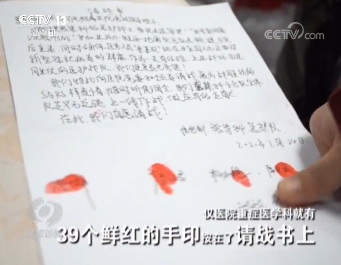 不到一天的時間,四川南充川北醫(yī)學(xué)院附屬醫(yī)院僅醫(yī)院重癥醫(yī)學(xué)科就有39個鮮紅的手印按在了請戰(zhàn)書上。