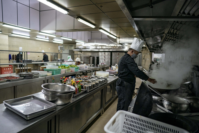 1月29日,云南省一安置點的廚師在為湖北滯留旅客準(zhǔn)備晚飯。