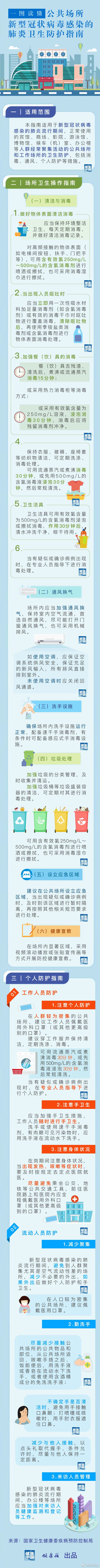 公共場(chǎng)所人群聚集,是新型冠狀病毒傳播的高風(fēng)險(xiǎn)地帶,賓館、商場(chǎng)、候車(chē)(機(jī))室、辦公樓等場(chǎng)所如何清潔消毒效果最佳?個(gè)人又該怎樣做好防護(hù)?國(guó)務(wù)院應(yīng)對(duì)新型冠狀病毒感染的肺炎疫情聯(lián)防聯(lián)控機(jī)制日前印發(fā)了《公共場(chǎng)所新型冠狀病毒感染的肺炎衛(wèi)生防護(hù)指南》,一起戳圖學(xué)起來(lái)?。ㄓ浾邷馗?jìng)?cè)A、田曉航)