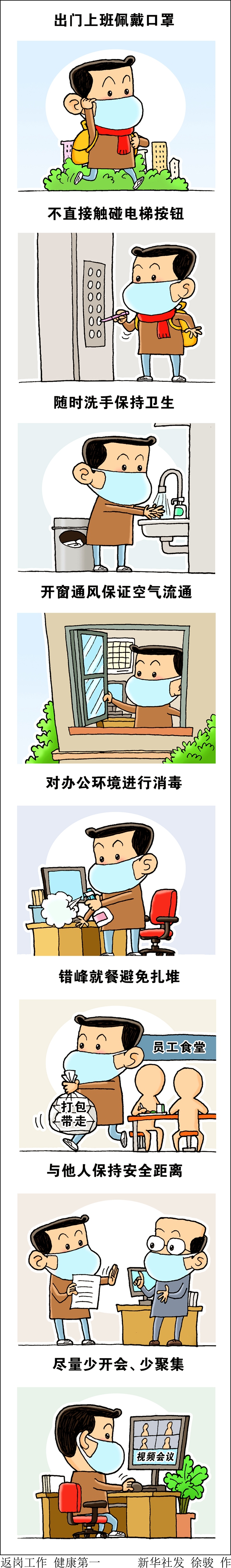 春節(jié)長(zhǎng)假結(jié)束,人們陸續(xù)返崗復(fù)工,開(kāi)始新一年的忙碌。當(dāng)前,疫情形勢(shì)依然嚴(yán)峻,節(jié)后上班切莫讓麻痹“上崗”,更需做好衛(wèi)生防護(hù)。佩戴口罩自不待言,避免扎堆就餐、勤洗手、勤消毒、避開(kāi)密集人群、保持安全距離等,都是遠(yuǎn)離病毒的必要舉措。寧可把風(fēng)險(xiǎn)想得高一點(diǎn),也要把防控做得嚴(yán)一些。人人都是一道防線,做好本職工作是一種擔(dān)當(dāng),保護(hù)好自己也是一種擔(dān)當(dāng)。道路千萬(wàn)條,健康平安第一條。