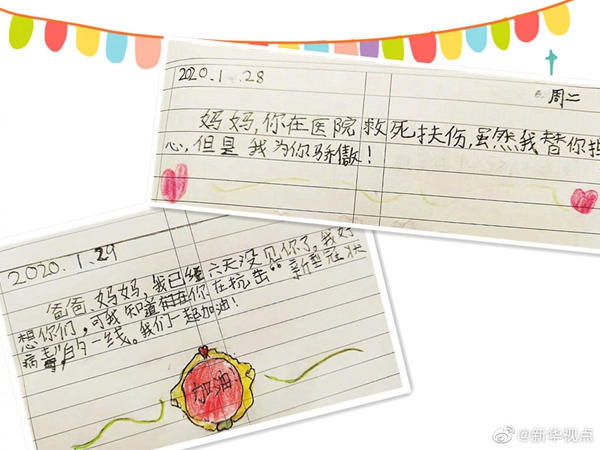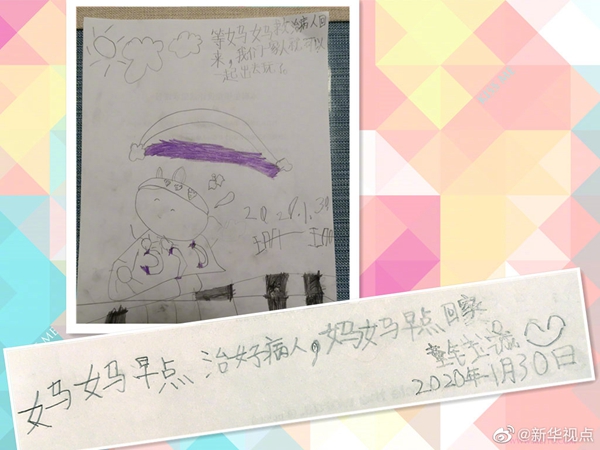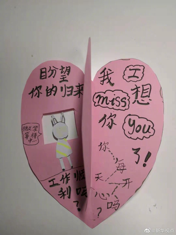 他們是醫(yī)生,是護(hù)士,也是爸爸和媽媽。面對(duì)疫情,華中科技大學(xué)同濟(jì)醫(yī)院的醫(yī)生護(hù)士們勇敢前行。在孩子們眼里,他們是值得驕傲的爸爸和媽媽。戳圖,看孩子們用自己的方式表達(dá)思念和鼓勵(lì)。(記者黎昌政、胡喆) ????