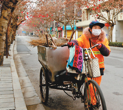 2月5日,湖北恩施市容環(huán)衛(wèi)管理局的環(huán)衛(wèi)工作者在清掃城市道路,維護(hù)環(huán)境衛(wèi)生。譚 華攝(人民視覺)