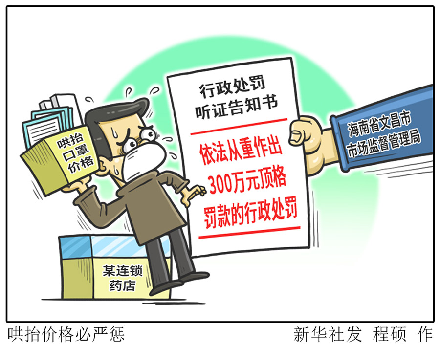 新華社海口2月6日電(記者吳茂輝)記者6日從海南省市場監(jiān)督管理局獲悉,近日,海南一九堂藥品連鎖經(jīng)營有限公司因哄抬價(jià)格,被文昌市市場監(jiān)督管理局下達(dá)《行政處罰聽證告知書》。根據(jù)這份告知書,這家公司將被罰300萬元。