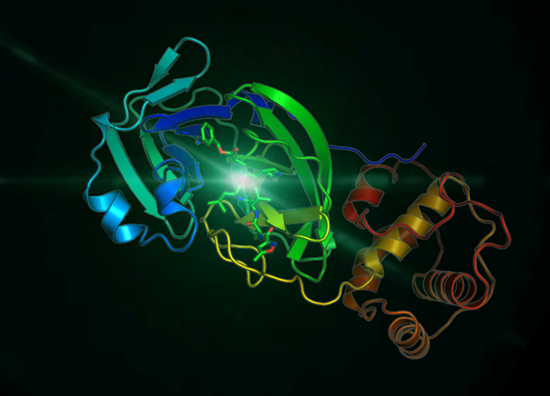圖為新型冠狀病毒3CL水解酶的高分率晶體結(jié)構(gòu)。上海科技大學(xué)免疫化學(xué)研究所和中國(guó)科學(xué)院上海藥物研究所抗2019-nCoV冠狀病毒感染聯(lián)合應(yīng)急攻關(guān)團(tuán)隊(duì)供圖